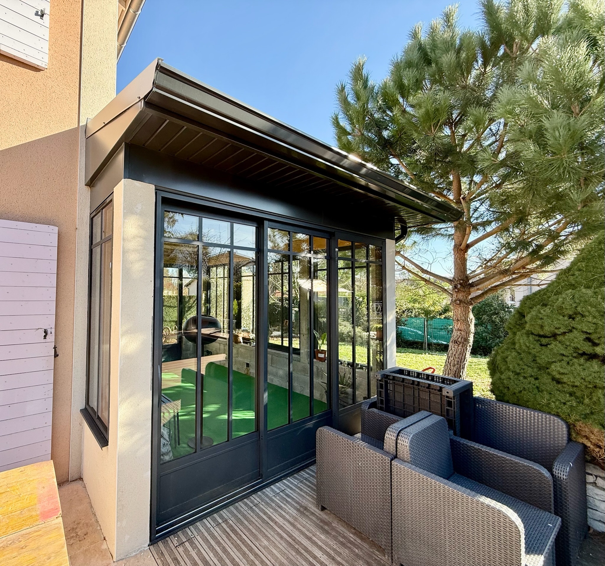 Vienne : Installation d'une Baie Vitrée Coulissante et Fenêtre Châssis Fixe Gris Anthracite par A2B Concept